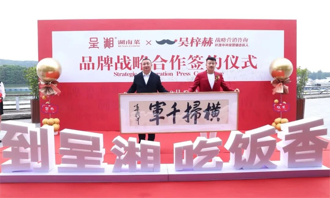 2023年10月10日,正式迎来吴梓赫战略营销咨询与呈湘的品牌战略合作签约日,两家公司代表齐聚太湖湖畔-吴梓赫战略营销咨询无锡总部,正式进行品牌合作签约仪式。时下呈湘在无锡拥有80家直营门店,本次合作,致力于对呈湘品牌进行全面提质升级,打造一个实力更强的湖南菜品牌。