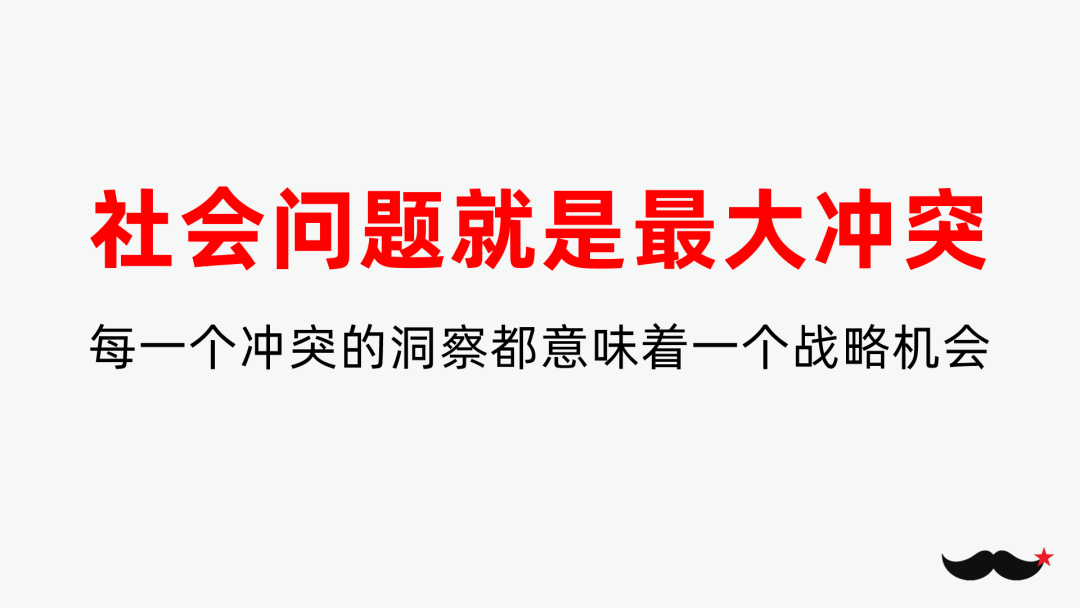 冲突是战略的第一步!而社会问题就是最大的冲突,每一个冲突的洞察都意味着一个战略机会。